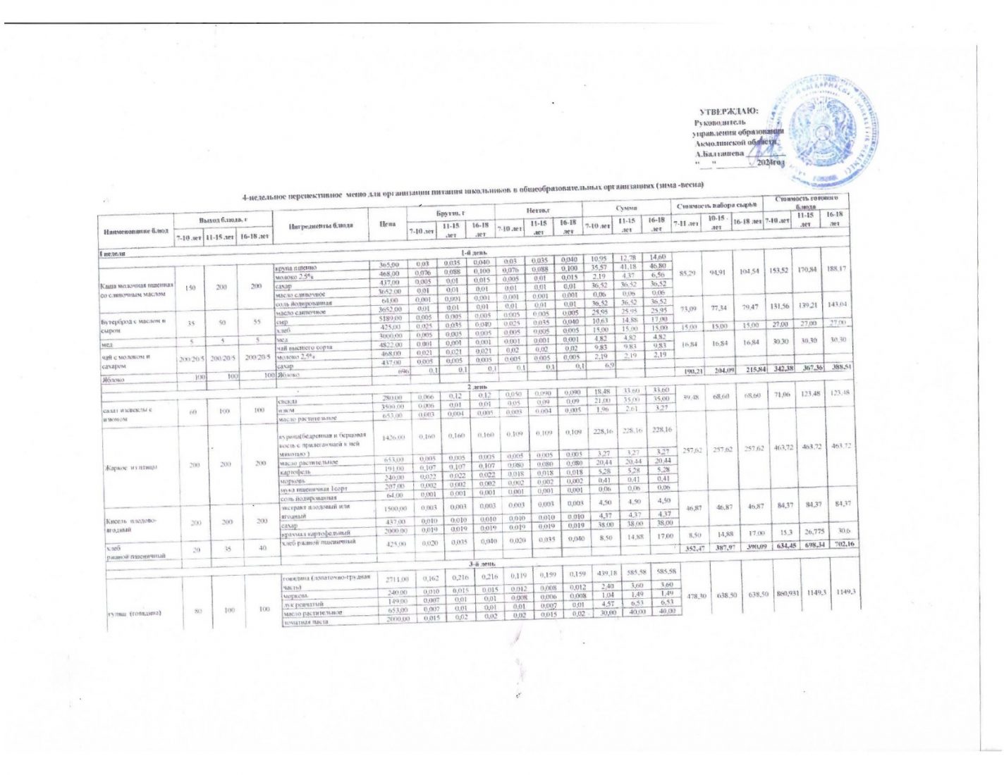 Областное меню