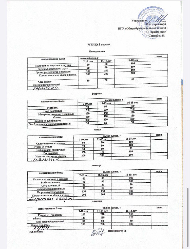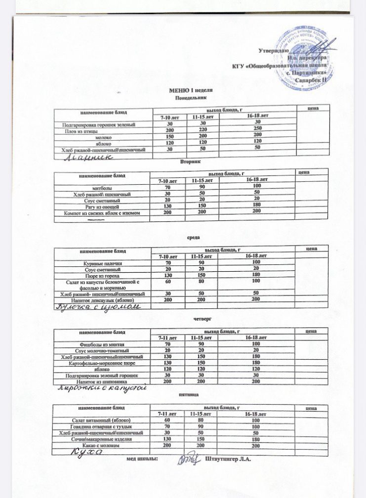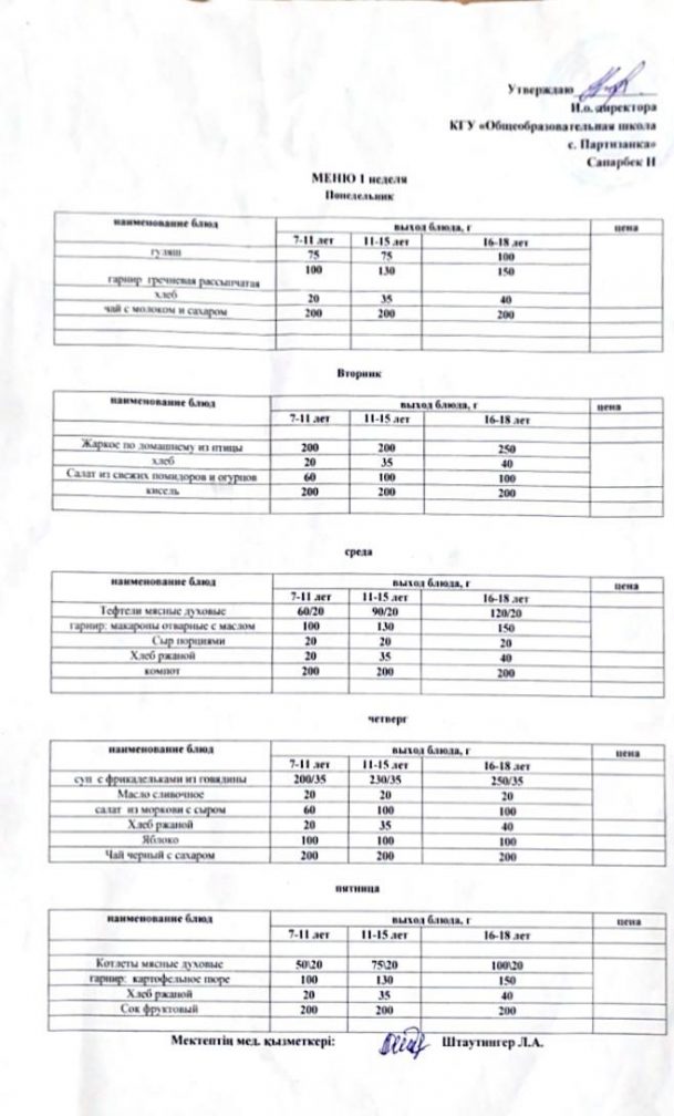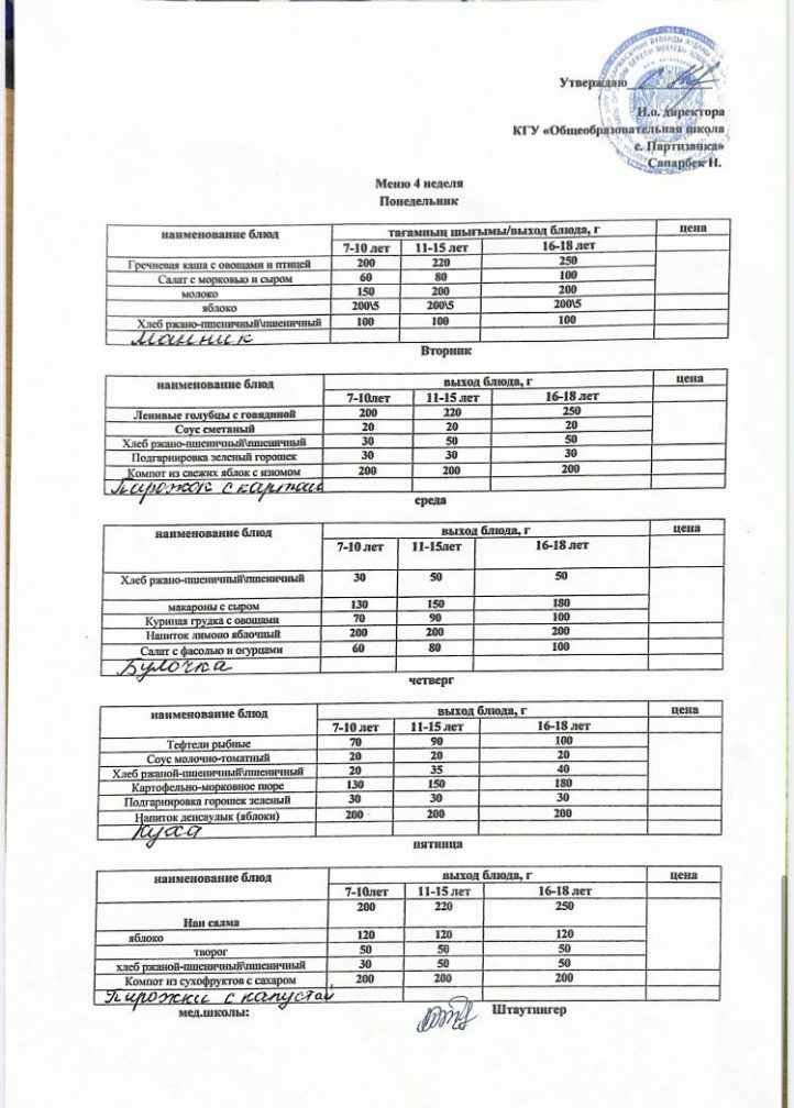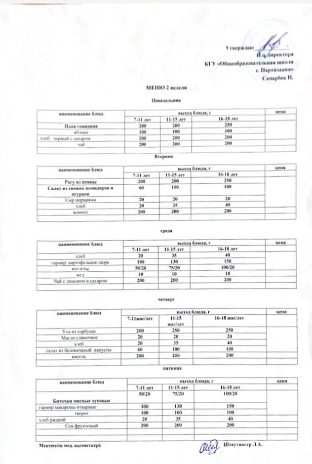 2025-2026 жылдарға арналған мектеп ас мәзірі