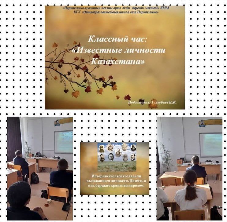 8Б сыныбында сынып сағаты және жеке қауіпсіздік сабағы өткізілді. Оқушылар қазақтың белгілі тұлғалары туралы қызықты деректермен бөлісті.